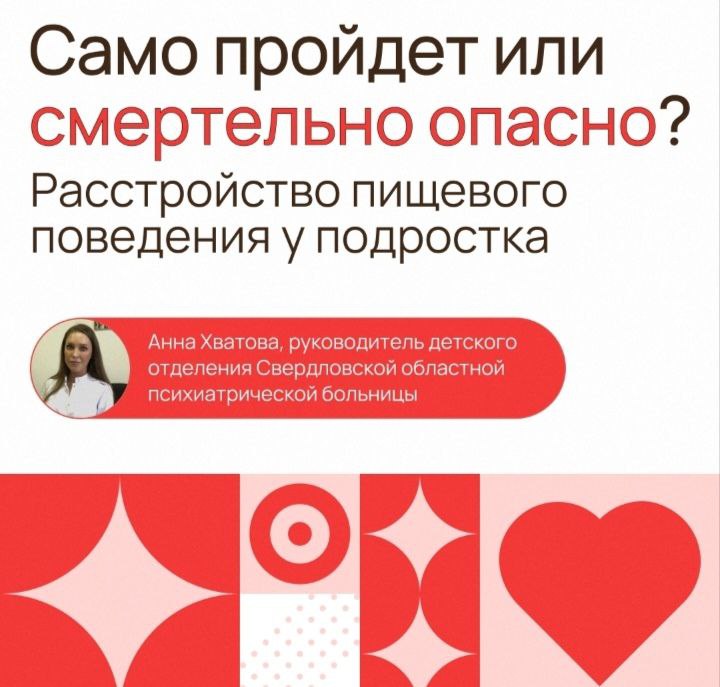 ️ Расстройство пищевого поведения у подросткаСвердловские врачи советуют взрослым быть внимательнее к своим детям, чтобы не пропустить начало психического нарушения, связанного с приемом пищи и искаженным восприятием подростком своей внешности.